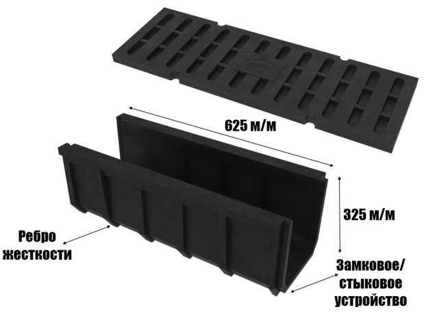 Подходит для прокладки водоотводной магистрали на промышленных объекта таких как производства, площадки строительных объектов, спортивные сооружения и тд.